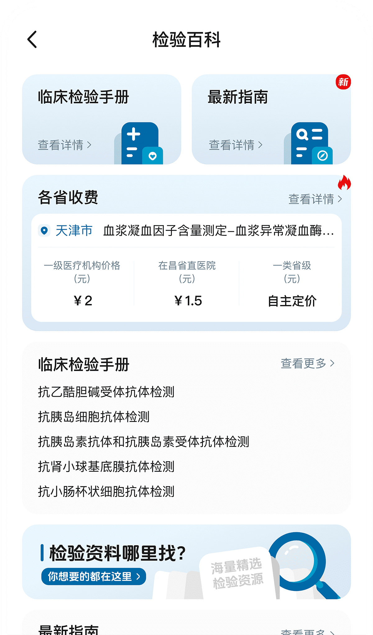 临床意义/检验方法/临床应用等专业知识检索便捷;